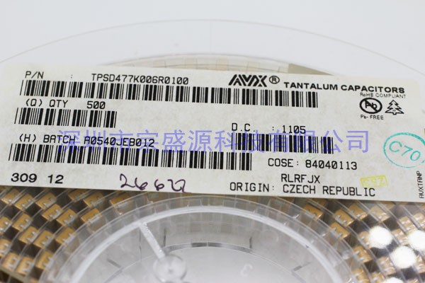 AVX钽电容,AVX就是一家从事无源电子元器件和互连接产品的设计、开发、生产和销售的公司,钽电容是由稀有金属钽加工而成,先把钽磨成微细粉,再与其它的介质一起经烧结而成。目前的工艺有干粉成型法和湿粉成型法两种。钽电容由于金属钽的固有本性,具有稳定好、不随环境的变化而改变、能做到容值很大等特点,在某些方面具有陶瓷电容不可比较的一些特性,因此在很多无法使用陶瓷电容的电路上钽电容被广泛采用。其中AVX公司生产的钽电容的产量相当可观。