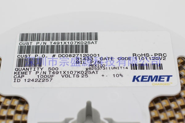 基美钽电容 7343 25V 100UF X型 T491X107K025AT