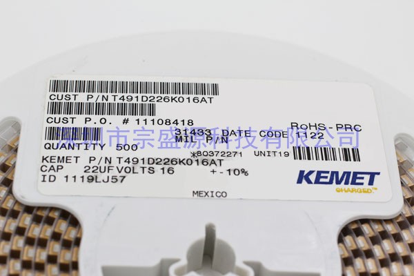 KEMET钽电容 7343 16V 22UF T491D226K016AT