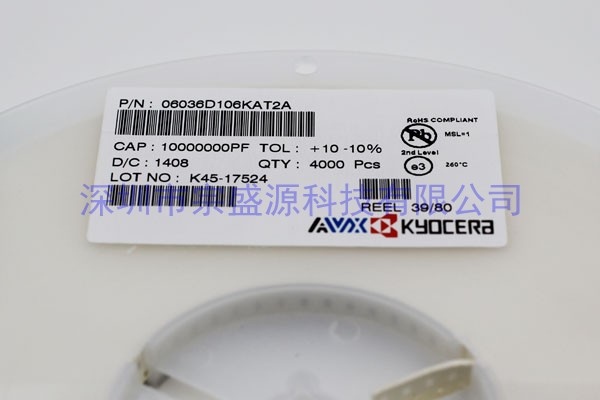 AVX陶瓷电容 0603 6.3V 10UF 06036D106KAT2A