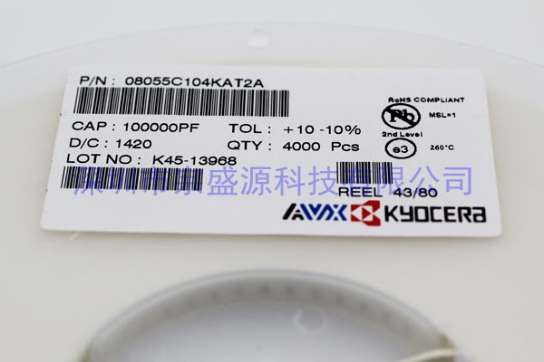 AVX陶瓷电容 0805 50V 0.1UF 08055C104KAT2A