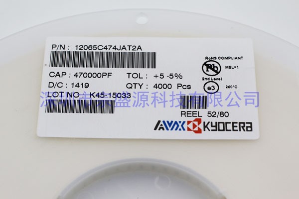 AVX陶瓷电容 1206 50V 0.47UF 12065C474JAT2A