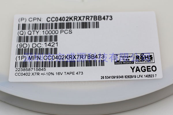 国巨陶瓷电容 0402 16V 0.047UF CC0402KRX7R7BB473