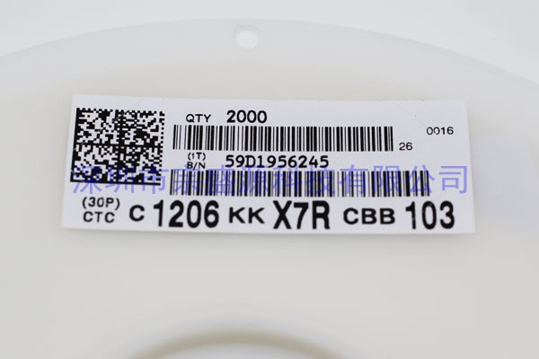国巨陶瓷电容 1206 1000V 0.01UF CC1206KKX7RCBB103