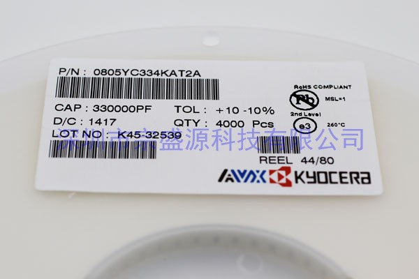 AVX陶瓷电容 0805 16V 0.33UF 0805YC334KAT2A