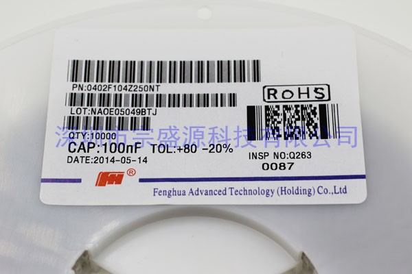 风华陶瓷电容 0402 25V 0.1UF 0402F104Z250NT