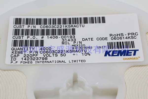 KEMET陶瓷电容 0603 50V 220PF C0603C221K5RACTU